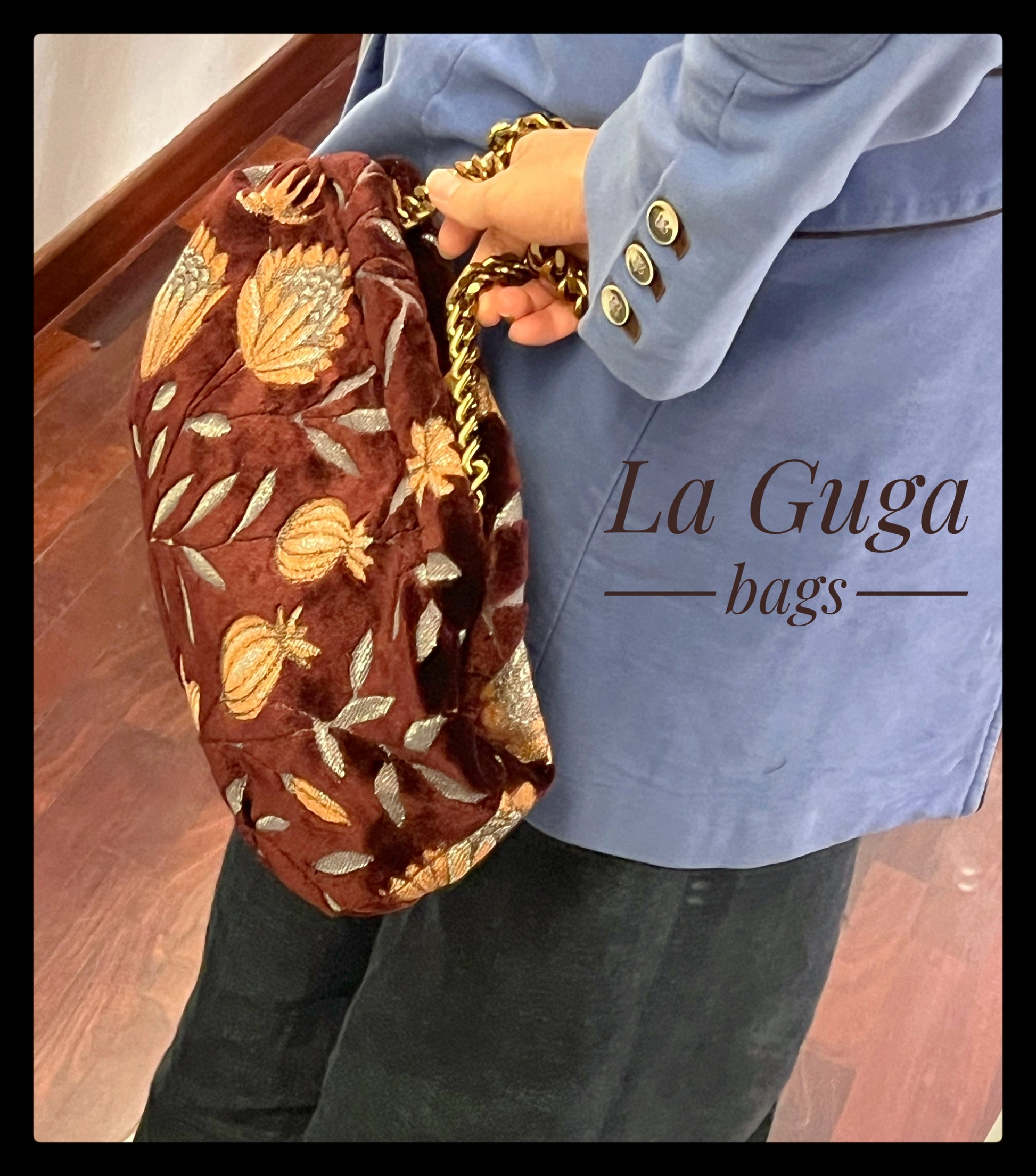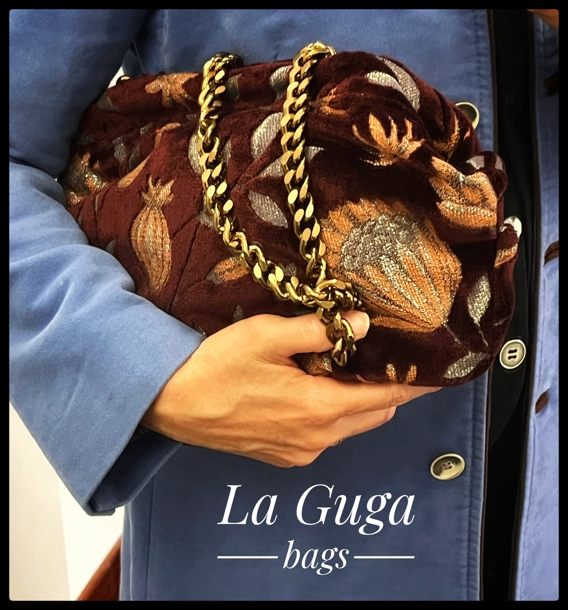 Clutch in velluto, all’interno una comoda tasca, catena da portare a spalla